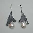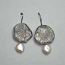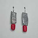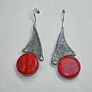 Sterling silver earrings incorporated with red corral and pearls.