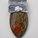 Sterling silver pendants, necklaces , brooches, rings and earrings incorporated with PIACSSO JASPER and finished with 18 karat yellow gold accents.